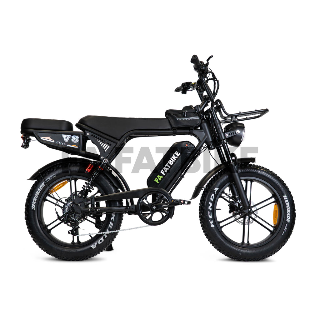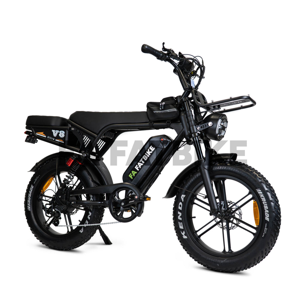 Met de brede 20x4 inch fatbike banden rijd je stabiel op verschillende ondergronden zoals asfalt, zand, gras of grind. Hierdoor is de V8 Ultra geschikt voor zowel dagelijks gebruik als langere ritten.