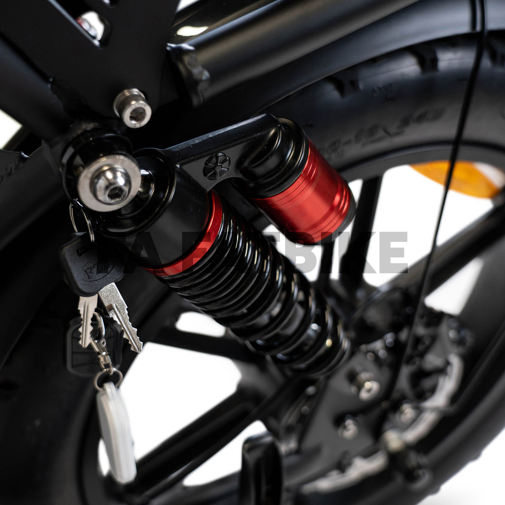 Ja, de V8 Ultra is uitgerust met voorvorkvering én dubbel achtervering. Hierdoor rijd je comfortabeler op verschillende ondergronden zoals asfalt, zand of boswegen.